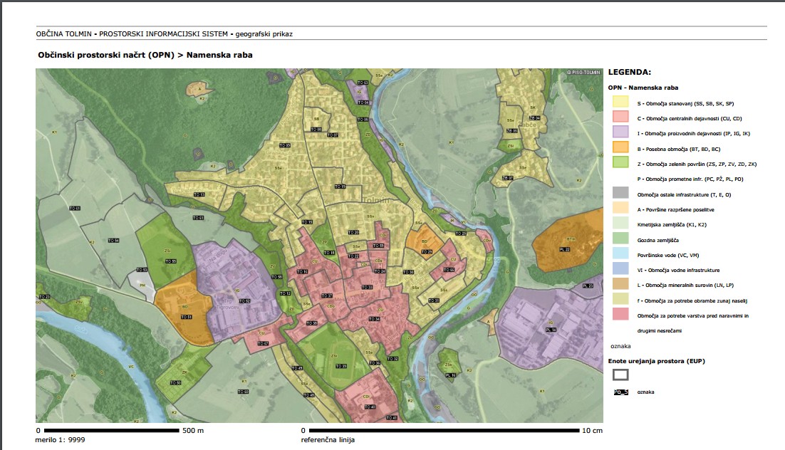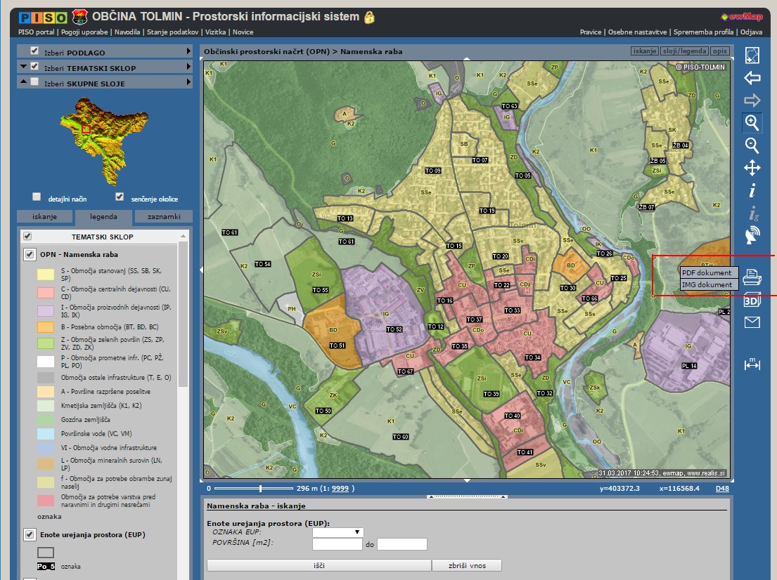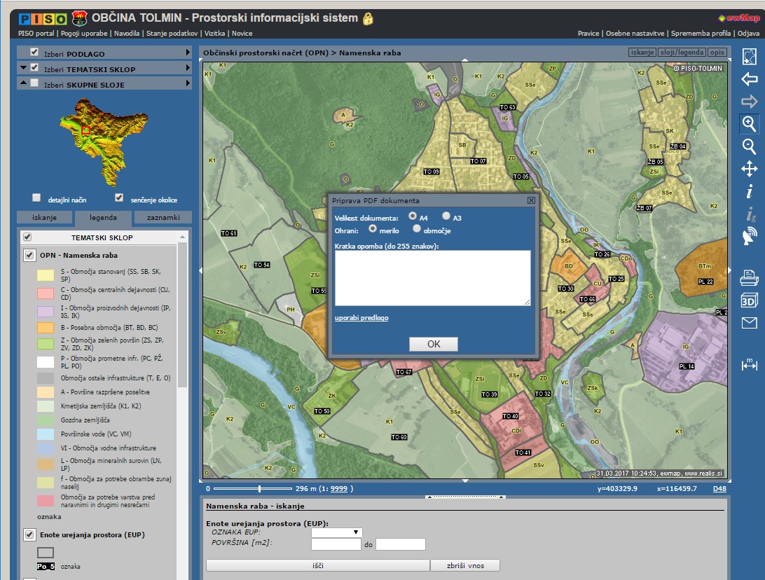- ob vstopu v sistem za izbrano občino se približamo območju in po potrebi izberemo vsebino iz tematskega sklopa,