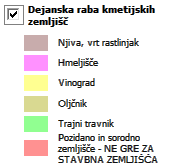 Dejanska raba zemljišč ne sme biti zamenjana za Namensko rabo iz Prostorskega plana Občin, ki določa namembnost zemljišč; torej stavbno, kmetijsko ... in ki jo določajo prostorski akti občine.