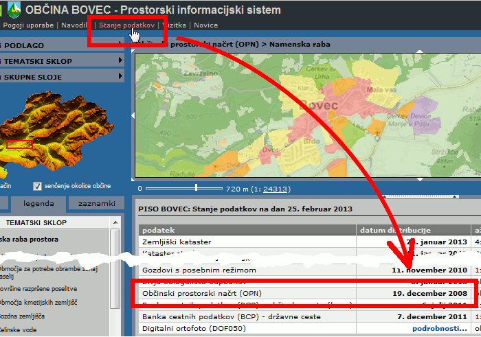 Evidenco prostorskih podatkov smo dopolnili z informacijo o sprejemu oziroma potrditvi Občinskih prostorskih načrtov (OPN) - pri občinah, ki so slednje že sprejele in vključile v sistem PISO.