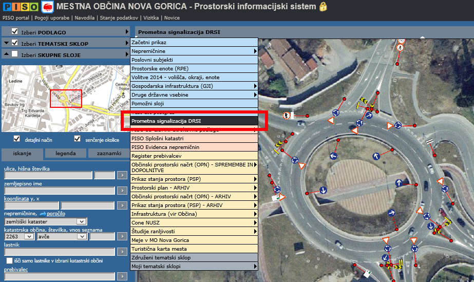 Vsem občinam, ki so nam posredovale vlogo za pridobitev podatkov DRSI, smo v interni del sistema PISO vključili tematski sklop Prometna signalizacija DRSI, v katerem je prikazana signalizacija na DRŽAVNIH CESTAH.