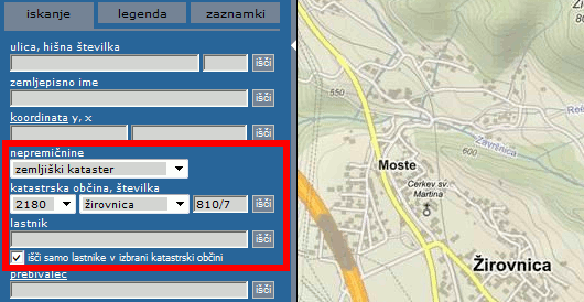 - Poenoteno iskanje lastnikov nepremičnin glede na naziv tako stavb kot parcel*;