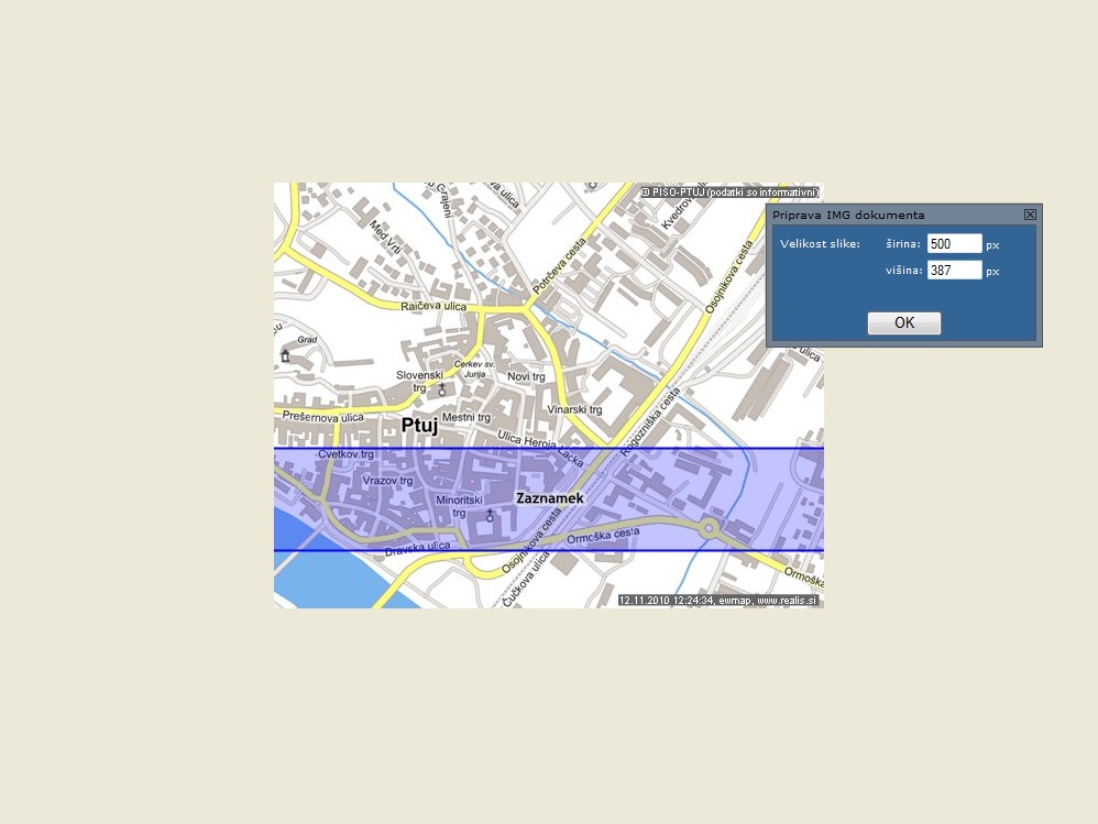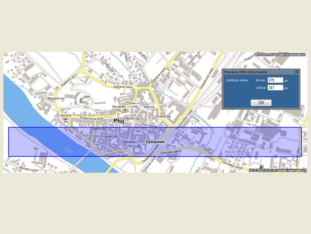 Priprava dokumenta v formatu IMG omogoča izvoz izključno vsebine prikaza. Velikost slike se sedaj izpiše v pikslih, ki v privzeti obliki predstavljajo trenutno velikost prikaza. To je možno prilagajati glede na željeno velikost.