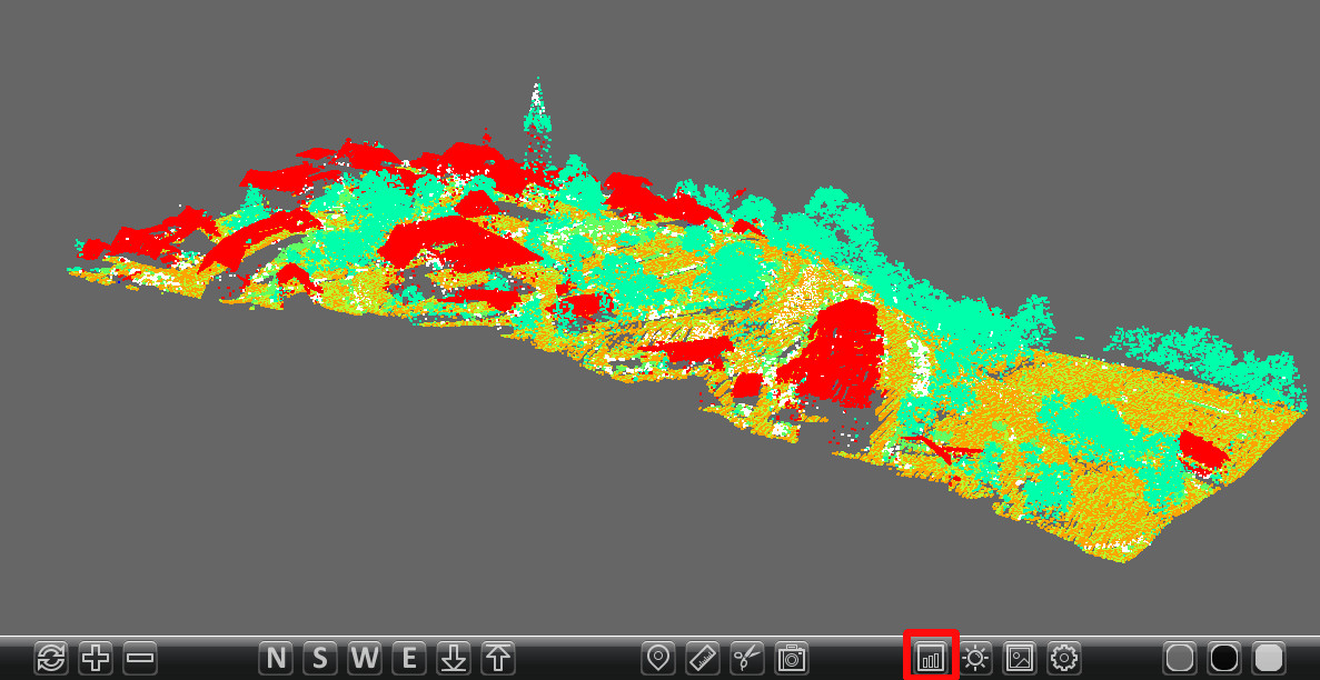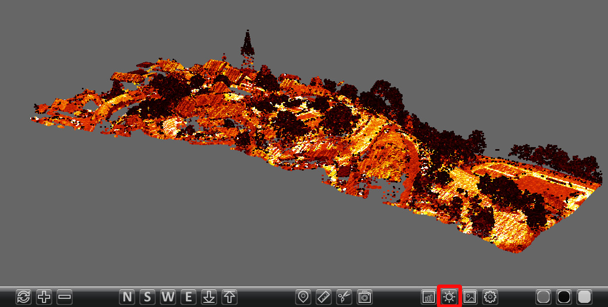 4. PRIKAZ GLEDE NA INTENZITETO ODBOJA: Izberete lahko tudi prikaz oblaka točk glede na intenziteto odboja.