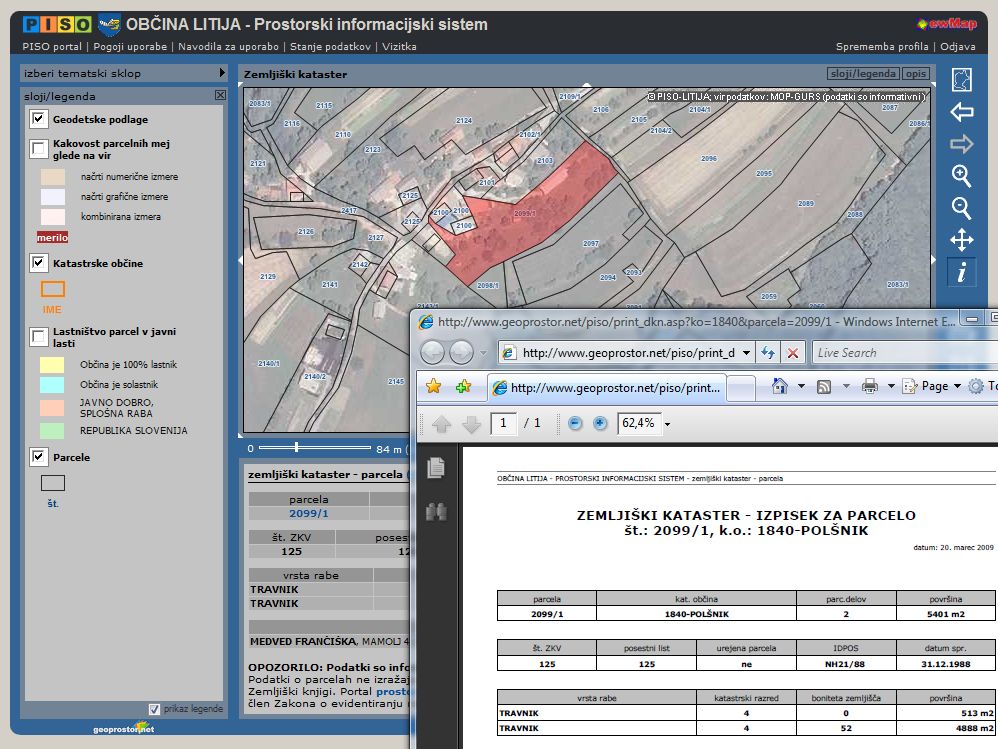 - priprava poročil in kartografskih vsebin za izpis na tiskalnik;