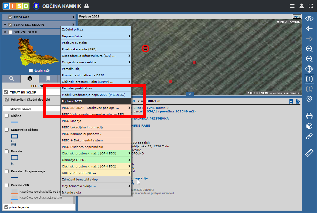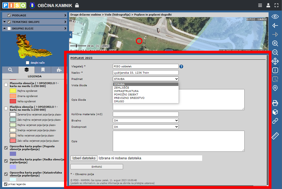 V INTERNI del sistema PISO smo dodali možnost vnosa poplavnega dogodka za namen evidentiranja škode.