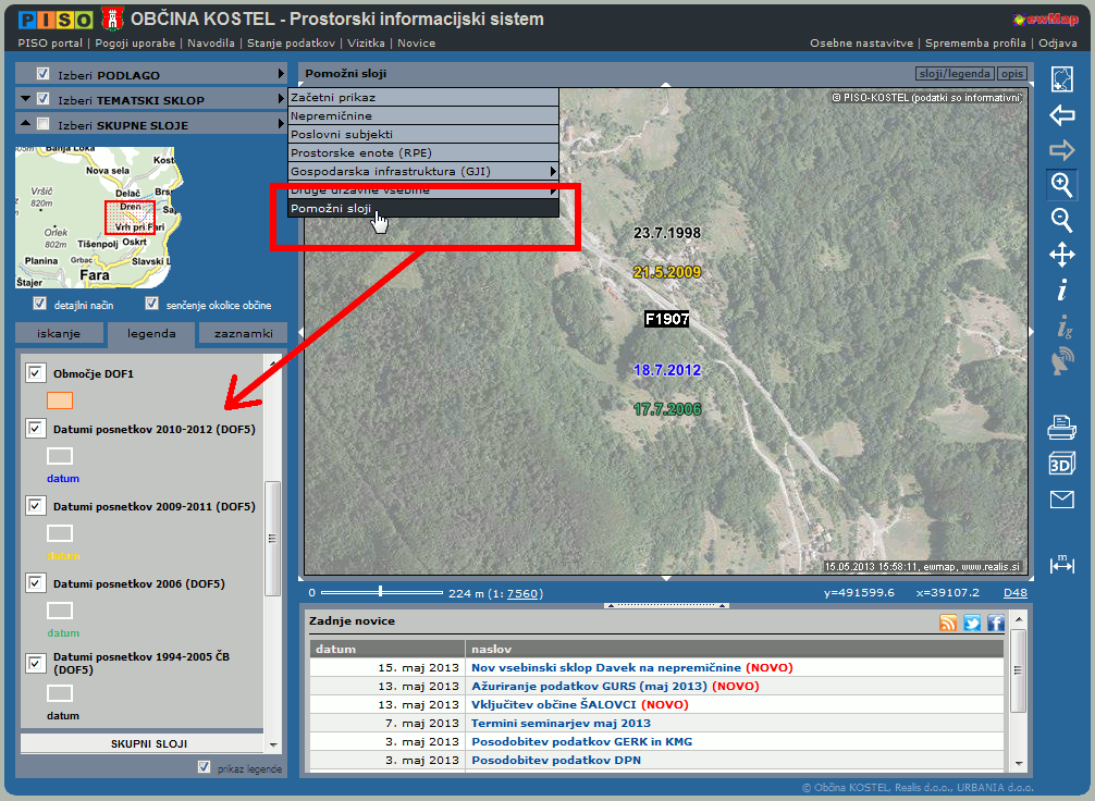 V sistemu PISO smo preuredili in preimenovali podlage, ki temeljijo na letalskih posnetkih DOF (digitalni ortofoto), ter dodali nekatere nove: