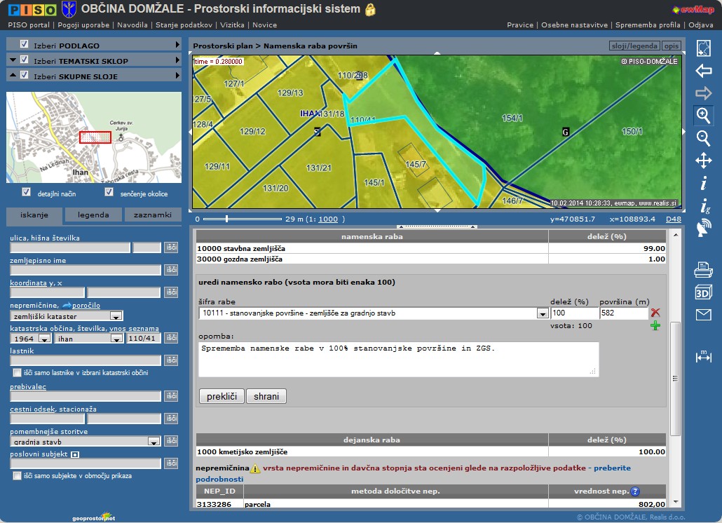 V postopku priprave Namenske rabe za vpis v evidenco REN, v katerem smo intenzivno sodelovali z občinami in Geodetsko upravo, smo PISO nadgradili z novo funkcionalnostjo Urejanja namenske rabe ZA INTERNE UPORABNIKE.
