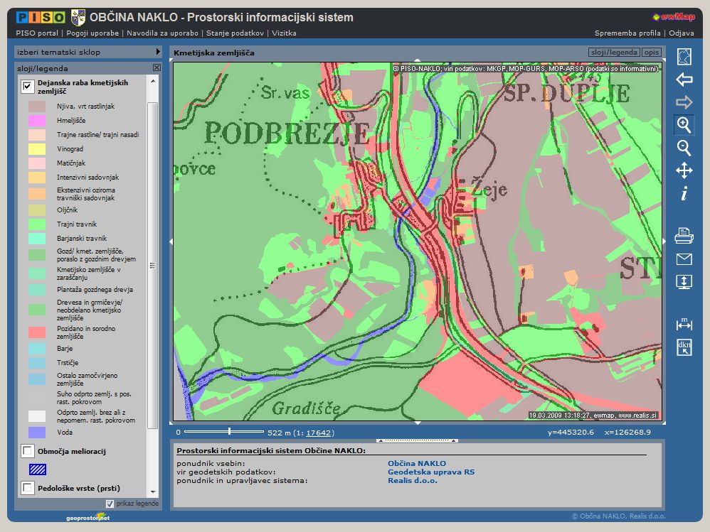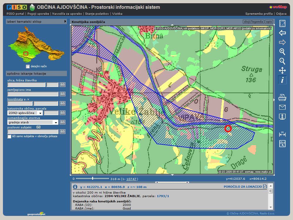 - izpis podrobnejših podatkov o kmetijskih zemljiščih za izbrano lokacijo