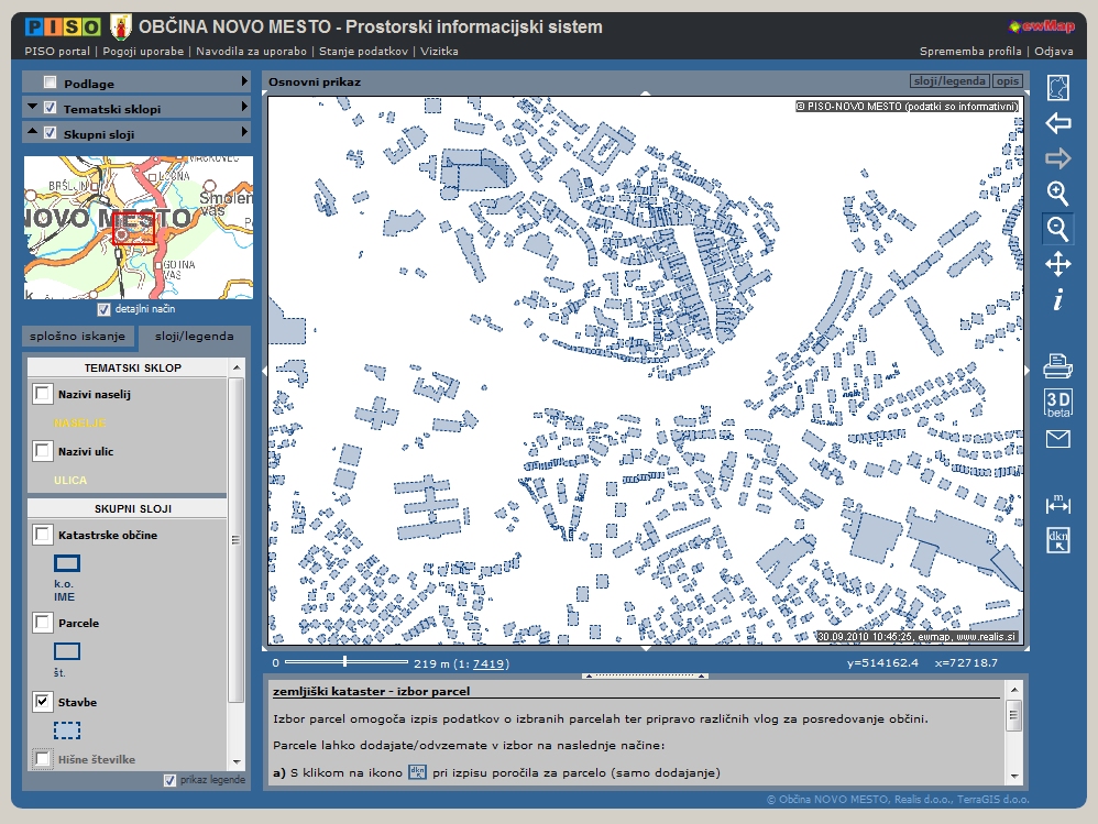 - prikaz obrisov stavb