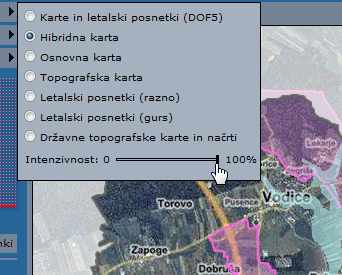 Poleg tega lahko sedaj s pomočjo drsnika poljubno nastavite intenzivnost podlag. Tako boste lahko v nekaterih primerih dodatno izpostavili sloje iz tematskega sklopa, ki bodo zaradi večje prosojnosti podlag bolje vidni.