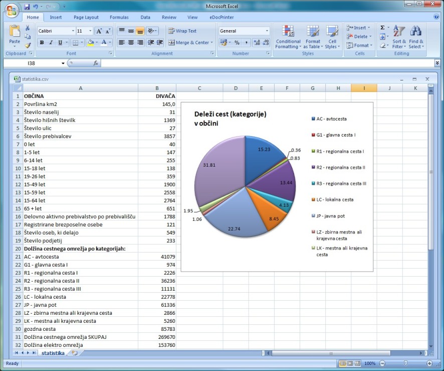 - Statistični podatki za občino (velikost, št. preb., dolžine infrastrukturnih vodov, število prostorskih enot...).